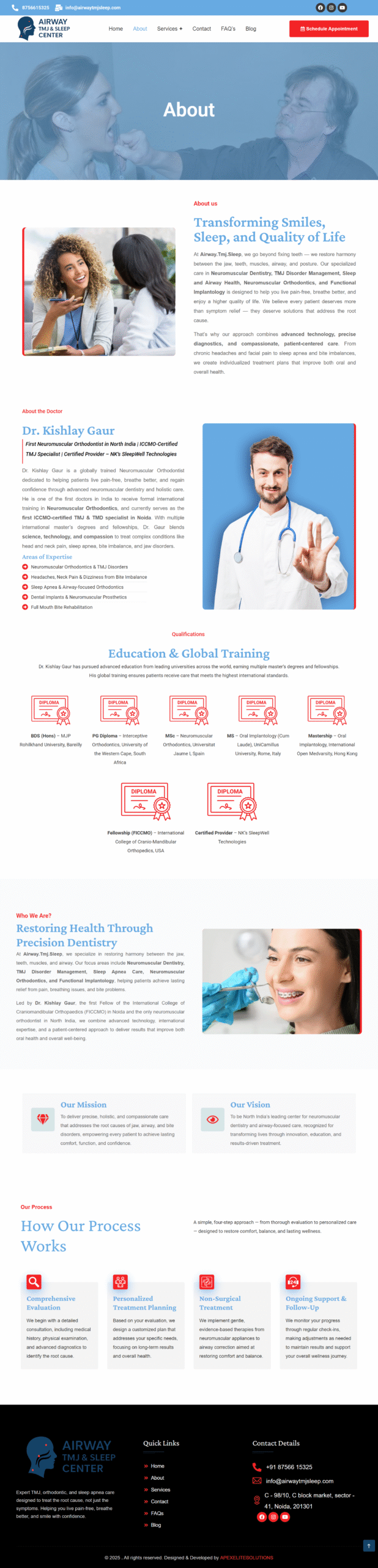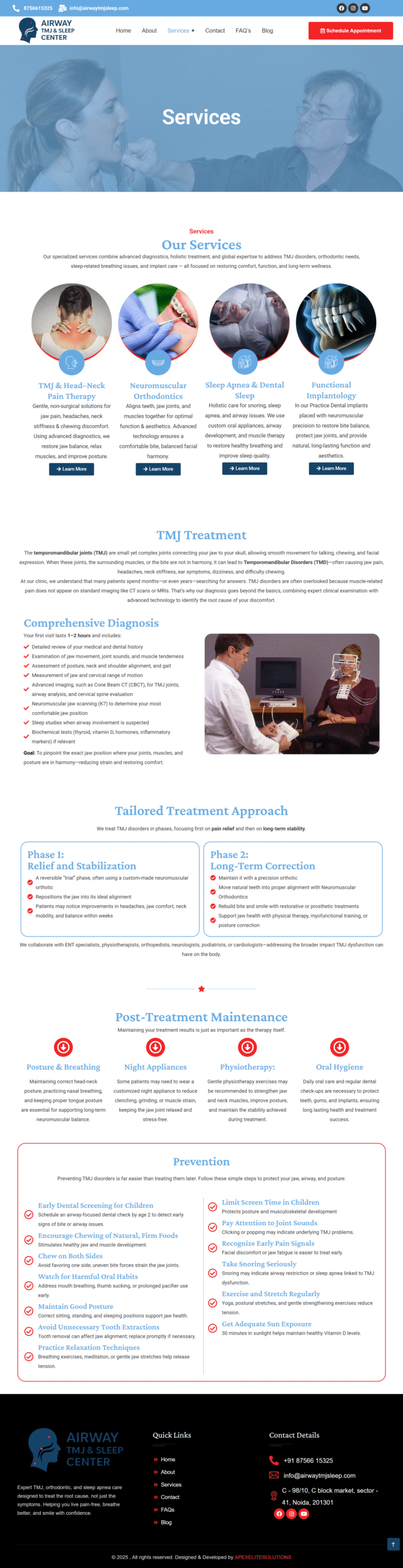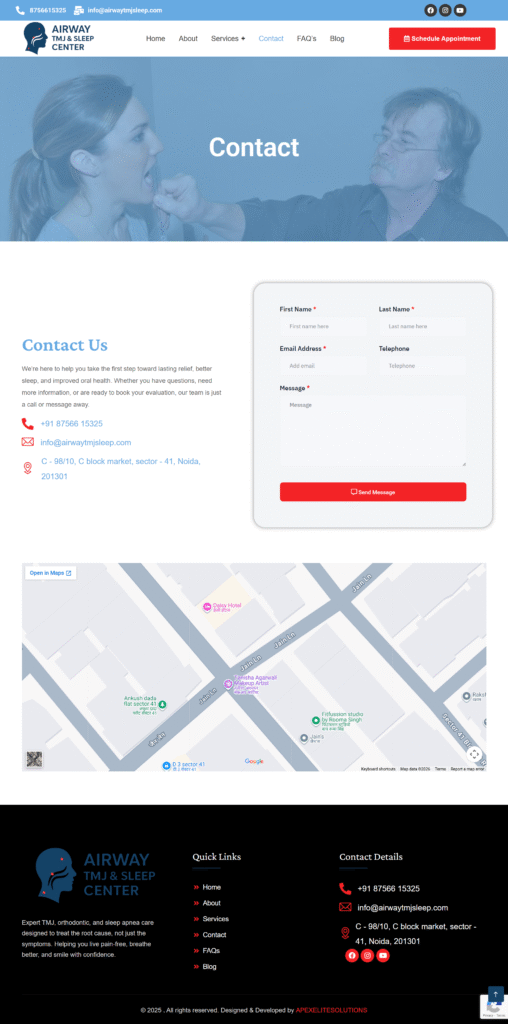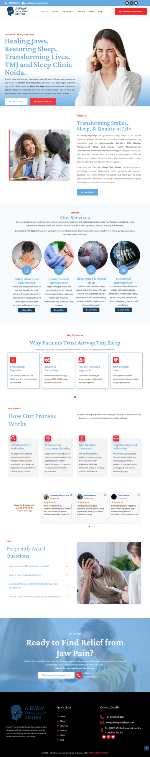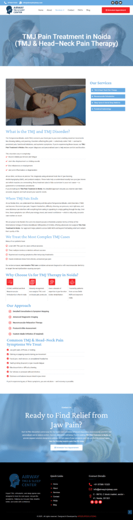 As a highly specialized medical clinic dealing with Neuromuscular Dentistry and Sleep Apnea, the client needed to simplify complex medical information for patients. The goal was to move beyond a “Dental” look and create a “Specialist Healthcare” experience that conveys cutting-edge technology and non-surgical relief.